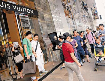 自由行常到的時代廣場,發(fā)言人也指,商場單日至少有15萬人次,人流升約10%,貴價鐘表同樣搶手,“有商戶指,不少內地客早前因甲型流感不敢來港,趁黃金周一并來香港購物,人均消費近萬元!