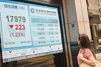 中新網(wǎng)7月7日電 據(jù)香港《文匯報(bào)》報(bào)道,港股6日走勢反復(fù),低開近200點(diǎn)后,一度倒升55點(diǎn),但午后大市再下跌,全日呈“倒V形”走勢,恒指收報(bào)17979點(diǎn),跌223點(diǎn),全日成交只有545億元,即月期指低水45點(diǎn)。