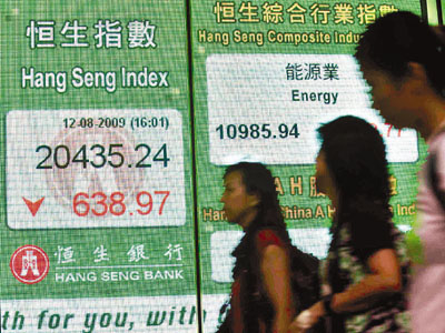 受到美股下跌影響,港股12日低開(kāi)348點(diǎn)后持續(xù)下滑,曾一度低見(jiàn)20417點(diǎn),恒指全日跌638.97點(diǎn)或3.03%,藍(lán)籌股幾乎全線下挫,重磅股匯控一度跌4.71%,中移動(dòng)跌穿90元,跌3.83%,港交所半年業(yè)績(jī)少賺26%,符合市場(chǎng)預(yù)期,股價(jià)連升2天后回吐3.88%,一度失守150元。