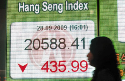 中新網(wǎng)9月29日電 據(jù)香港《文匯報(bào)》報(bào)道,期指結(jié)算日前,加上內(nèi)地A股下午急跌,令恒指28日尾市跌幅擴(kuò)大,全日最低位在3時(shí)半后出現(xiàn),恒指曾跌近500點(diǎn)至20534點(diǎn),一度失守50天線(即20573點(diǎn))。恒指收?qǐng)?bào)20588點(diǎn),跌435.9點(diǎn),跌幅逾2%,全日成交額再縮至511億元。