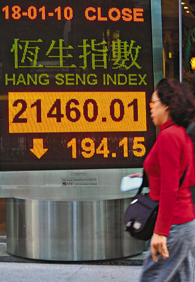 中新網(wǎng)1月19日電 據(jù)香港《文匯報》報道,承接美股弱勢,港股18日低開227點后,最多跌過334點,其后在中資金融股反彈下,下午跌幅進一度收窄至不足10點,但其后跌幅再擴大,最終收報21460點,跌194點,總成交695億元,是連續(xù)5天跌市,全日高低波幅325點。