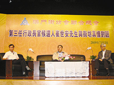 也有年輕人期望崔安能重視藝術(shù)教育及推動創(chuàng)意產(chǎn)業(yè),崔世安稱,會盡快成立文化產(chǎn)業(yè)咨詢委員會,加強推廣澳門創(chuàng)意產(chǎn)業(yè)。