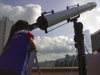 另外,香港天文學(xué)會也在屯門一間小學(xué),擺放有濾光設(shè)備的望遠(yuǎn)鏡,供市民觀看日偏食,預(yù)料會有大約1000人觀看。