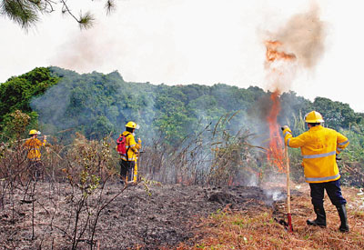 中新網(wǎng)10月27日電 據(jù)香港《文匯報(bào)》報(bào)道,不少香港市民趁26日重陽節(jié)到各區(qū)墳場掃墓,適逢天文臺發(fā)出黃色火災(zāi)危險(xiǎn)警告,以致山火頻發(fā)。消防處26日接獲32宗山火報(bào)告,雖無人受傷,但消防員疲于奔命,帶備火拍及背泵上山撲火。由于山火眾多,港府飛行服務(wù)隊(duì)直升機(jī)也頻頻出動,空投水彈協(xié)助救火。