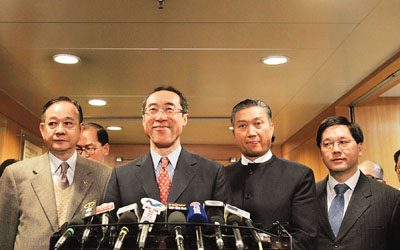 唐英年、政制及內(nèi)地事務(wù)局局長(zhǎng)林瑞麟、民政事務(wù)局局長(zhǎng)曾德成等,19日出席18區(qū)區(qū)議會(huì)正副主席例會(huì),聽取他們對(duì)剛發(fā)表的咨詢文件意見,歷時(shí)約為1小時(shí)。據(jù)了解,除了2名區(qū)議會(huì)主席因事未能出席,其它區(qū)議會(huì)正副主席都有出席會(huì)議。