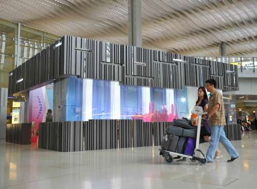 中新網(wǎng)4月30日電 據(jù)香港《大公報》報道,上海世博盛會蓄勢待發(fā)。為宣傳上海世博香港館,香港國際機場特地仿照香港館外形,在客運大樓內(nèi)設(shè)立“微型”香港館,介紹香港館特色。政制及內(nèi)地事務(wù)局局長林瑞麟說,香港館在試運期間,每日有一萬人次參觀,推算世博期間香港館參觀人次可達(dá)一百八十萬人次。