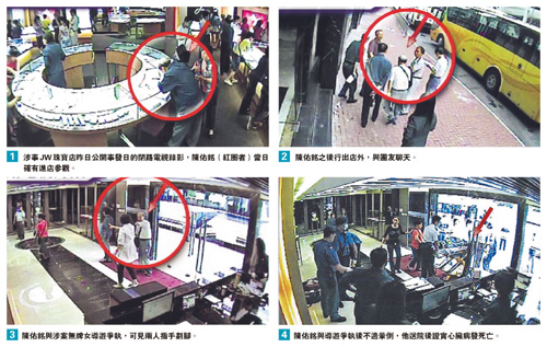 陳佑銘的遺孀、女兒及家屬經(jīng)過極力要求,昨日獲安排到肇事珠寶店翻看事發(fā)時(shí)的閉路電視。據(jù)悉,家屬逗留該店半小時(shí),當(dāng)看到職員及導(dǎo)游對(duì)陳佑銘的態(tài)度時(shí),家屬一度情緒激動(dòng),要由他人扶持下離開。