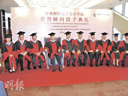 中新網(wǎng)6月9日電 據(jù)香港明報報道,“賭王”何鴻燊久病復(fù)出,內(nèi)地中央財經(jīng)大學(xué)想頒會計學(xué)院榮譽顧問榮銜,校方明白“賭王”的身體狀況,所以中央財經(jīng)大學(xué)副校長到香港,在信德中心舉行頒授儀式,除“賭王”外,郭炳湘、李國寶、方潤華同馬時亨都有份接受榮銜。