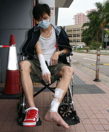 無(wú)辜遭殃的裝修工人名梁×德(28歲),左小腿及右手腕皆被腐蝕性液體濺中受傷,經(jīng)送院診治,初步確實(shí)屬三級(jí)灼傷,治療后幸無(wú)大礙已出院。消息稱,當(dāng)時(shí)他戴著耳筒聽音樂,聽不到同事大叫及避走四散,以致受傷。