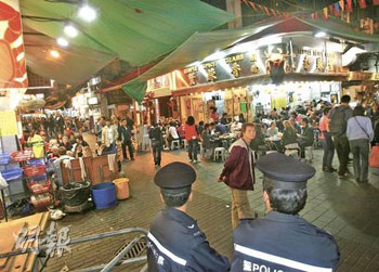 廟街商會主席陳錦榮10日說:“我們這么多人,天眼是死的,人是生的,更可靠!彼粲醺魃虘艏訌娛赝庾R,若再發(fā)生類似事件,應(yīng)盡量在一分鐘內(nèi)分頭監(jiān)視附近“三無”大廈,即無保安員、閉路電視及閘門的大廈梯口,爭取“黃金一分鐘”,以便警方趕至抓犯。記者10日走訪港九多個被犯罪學(xué)家稱為高危的行人專用區(qū)及露天購物熱點,多個商戶紛紛響應(yīng)號召。
