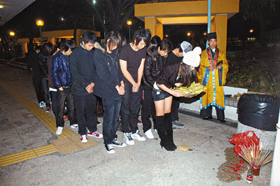 至吳遺體移送殮房時,各人更脫下外套一字排開,組成“人肉屏障”阻擋記者鏡頭。至傍晚時分,該批青少年帶備香燭冥鏹,到介仔遇襲現(xiàn)場路祭,東九龍重案組及反黑組探員聞風而至,逐一登記各人資料,并監(jiān)視路祭情況,眾青少年由一名儼如“大家姐”的少女率領,拜祭一番后離去。