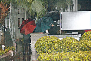 由于15日晚香港突下起傾盤大雨,他們一下車便有7、8個保鏢趕上前,撐起傘陣護(hù)送他們?nèi)雰?nèi),這頓私人晚餐連公關(guān)也不知情,如今被傳媒識破,不過依然沒影響他們的雅興。