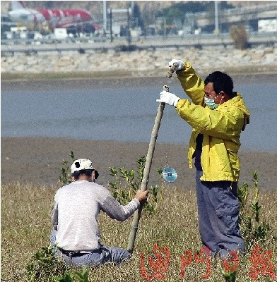 中新網(wǎng)1月19日電 據(jù)澳門(mén)日?qǐng)?bào)報(bào)道,澳門(mén)路氹城固體廢物堆填區(qū)和附近淺灘長(zhǎng)期有大批雀鳥(niǎo)棲息覓食,經(jīng)常闖入機(jī)場(chǎng)范圍,對(duì)航機(jī)安全構(gòu)成威脅。民署18日派出工程人員在靠近機(jī)場(chǎng)的淺灘架設(shè)八組由光盤(pán)組成的反光裝置,測(cè)試驅(qū)趕雀鳥(niǎo)效果。