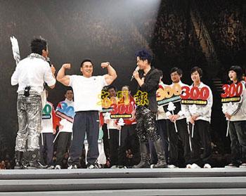 在演唱會中,眾運動員獲安排上臺演唱2009東亞運動會主題曲《沖出世界》,同時“阿麟”“克勤”則大搞氣氛,把東亞運300天倒數(shù)活動帶上高潮。他們先是邀請亞運金牌健美項目“大只佬”陳潤韜展示一下粗壯的手臂,即教觀眾嘩嘩大叫,“乒乓孖寶”更表示奪獎牌是東亞運的目標,譚詠麟又向“黑妹”葉姵延下戰(zhàn)書。