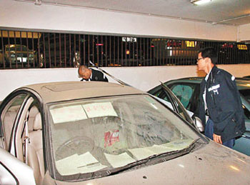 其間,有巡樓的保安員發(fā)現(xiàn)該私家車冒煙,以為發(fā)生火警,上前察看下發(fā)現(xiàn)擋風(fēng)玻璃及司機(jī)位玻璃窗貼有大字報(bào),上面寫著“××銀行謀財(cái)害命,又一城分行!”保安員并發(fā)現(xiàn)濃煙密布的車內(nèi),有一名女子情緒激動,懷疑她自殺,報(bào)警求助。