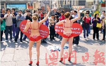 其中一人表示,穿內衣宣傳主要是吸引公眾注意,她們是第一次在澳門進行相關活動,但在世界其它地方就進行超過100次。她有感澳門是個浪漫和熱情的城市,且公民接受能力強,故特選情人節(jié)前在澳宣傳,相信能有效傳播善待動物的信息。
