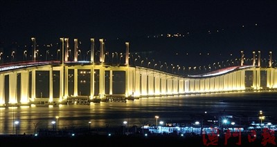 中新網3月16日電 據(jù)澳門日報報道,澳門三條跨海大橋照明系統(tǒng)去年底在臺風中受損及被“水老鼠”偷竊,有關單位耗資1800多萬元進行大規(guī)模維修。有關工程已全部完成,入夜后澳氹間海面再現(xiàn)“長虹”。