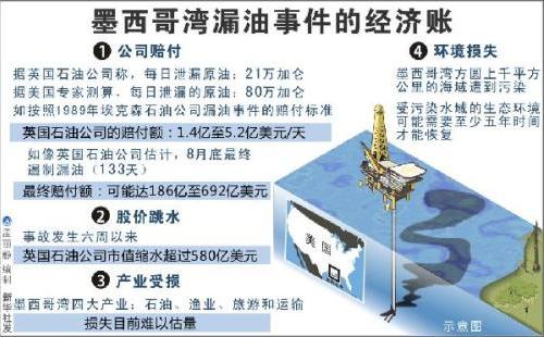 瑞士信貸銀行說,英石油清理漏油和應(yīng)對法律訴訟花費將累計370億美元;高盛公司估計為330億美元;雷蒙德—詹姆斯合伙公司分析師說,美國涉及環(huán)境案件的司法制度“更有利原告方”,英石油“賬單”稅后將接近630億美元。