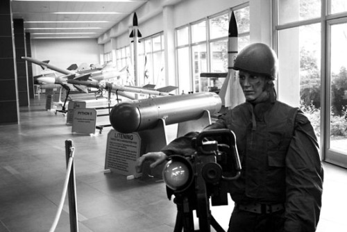 拉斐爾公司的導(dǎo)彈研發(fā)部坐落在以色列北部茂密的樹林之中。記者乘坐的大巴車在丘陵地帶七轉(zhuǎn)八拐地開了近3個小時,才到達一座老舊的辦公樓前。還沒下車,拉斐爾公司的工作人員就向記者們“約法三章”:只可拍攝大廳中展示的導(dǎo)彈裝備,不得拍攝其他任何設(shè)施和人員;在會議室中,工作人員將結(jié)合演示文檔對某些武器裝備進行講解,記者們只能錄音,不準拍攝。宣布完紀律后,工作人員開始挨個檢查記者證。參觀前這番嚴密的保密部署,著實讓記者感到了這棟大樓里非同一般的緊張氣氛。