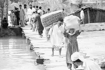 開伯爾—普什圖省的斯瓦特河谷地帶是受災(zāi)最為嚴(yán)重的地區(qū)之一。當(dāng)?shù)氐姆课、醫(yī)院和通信設(shè)施已經(jīng)遭到嚴(yán)重毀壞。由于此前塔利班等武裝組織一直盤踞在這里,自去年巴軍方發(fā)動大規(guī)模清剿行動以后,大批的民眾流離失所,目前回歸的難民剛得到安頓,便又受到洪災(zāi)的侵害,這將進一步延緩當(dāng)?shù)刂亟ǖ牟椒ァ?/p>