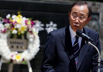 潘基文首先參觀了長(zhǎng)崎市內(nèi)的核爆資料館,會(huì)見了“長(zhǎng)崎核爆受災(zāi)者協(xié)會(huì)”會(huì)長(zhǎng)谷口稜曄(81歲)及包括在日韓國(guó)人在內(nèi)的受害者,聽他們講述了遭轟炸的經(jīng)歷。