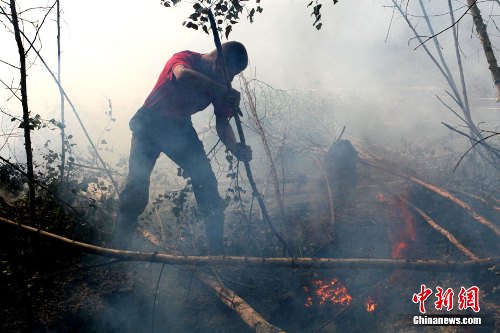 一名滿身泥土的滅火隊(duì)員對(duì)記者說,他們是10號(hào)從另一火場(chǎng)趕到這里的,“當(dāng)時(shí)的情形非常嚴(yán)重,地下是泥炭火,地上是森林火,煙霧中2米開外就什么都看不到了,沒法呼吸。最后呼叫飛機(jī)趕來(lái)灑水才控制住火情!