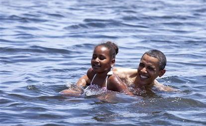 不過白宮官方網(wǎng)站幾個(gè)小時(shí)后還是主動(dòng)發(fā)布了一張奧巴馬父女戲水的照片,相比2008年在夏威夷被拍到令人“印象深刻”的胸肌和腹肌,這次奧巴馬很低調(diào),他笑容燦爛,只在海水中露出半邊性感的肩膀。