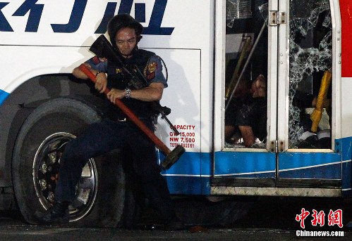 另據(jù)報(bào)道,在菲律賓馬尼拉挾持香港旅行團(tuán)的槍手,與警方對(duì)峙約9小時(shí)后,于23日晚間被擊斃。電視畫面顯示,槍手尸體掛在旅游巴士破損的前門上。