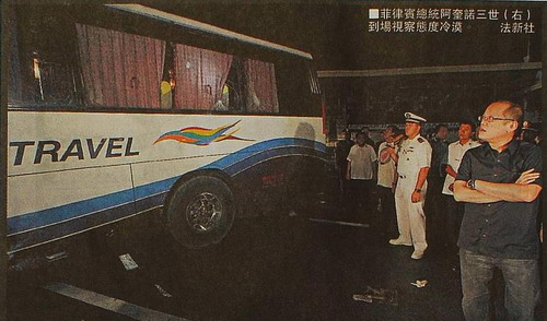 阿基諾三世在處理此次事件上一直備受抨擊,他被指事發(fā)時(shí)在現(xiàn)場(chǎng)附近一間餐廳跟警察首長(zhǎng)吃晚飯,一邊看電視卻沒(méi)有做任何事。菲律賓官員則指出,槍手挾持人質(zhì)時(shí),總統(tǒng)與內(nèi)閣官員和馬尼拉市長(zhǎng)其實(shí)是在餐廳內(nèi)“商討事件,指揮大局”,并不是為了吃晚飯。