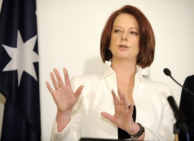 今年6月,時任總理陸克文因推行超額資源稅等政策引起業(yè)界不滿,執(zhí)政黨工黨的支持率下降,6月24日在工黨黨內(nèi)選舉中吉拉德當選黨首,取代陸克文出任總理,并宣誓就職。