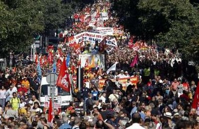 中新網(wǎng)9月24日電 法國工會23日發(fā)動一個月內(nèi)第二次全國大罷工,290萬人走上街頭,抗議政府打算推行的退休制度改革。