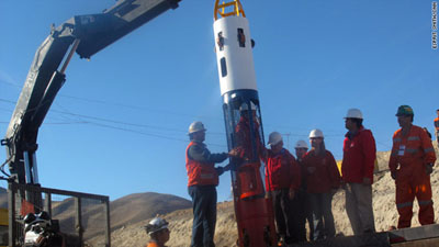當(dāng)救援通道完全打通后,工作人員將把這種救生艙放入井下,救生艙大概有一人大小,可以將井下礦工一個(gè)接一個(gè)的運(yùn)送出洞。智利政府表示,如果進(jìn)展順利,他們可能將于11月初或者更早被救出。