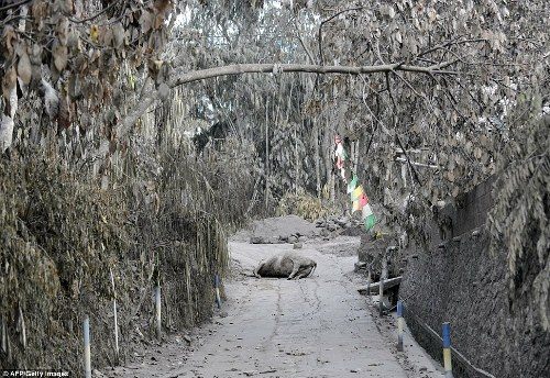 當火山暫時停歇,厚厚的火山灰隨之降落地面,村民們賴以生存的家園也變得面目全非。當?shù)毓賳T稱,火山噴發(fā)所及之地已完全沒有生命跡象,沒有樹木、沒有農(nóng)田,房子也被燒焦,所有的東西都被覆蓋了厚厚的火山灰。
