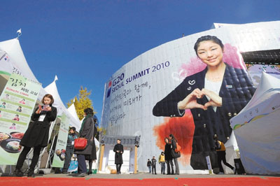 峰會主辦方別出心裁,推出峰會宣傳大使,是G20峰會歷來第一次。結果,冬奧會金牌得主、當紅滑冰選手金妍兒和足球運動員樸智星,以及憑《燦爛的遺產(chǎn)》竄紅的韓孝珠當選。