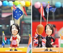 中新網(wǎng)11月12日電 據(jù)外媒報(bào)道,G20峰會正在韓國首爾舉行,當(dāng)?shù)厍逑◤V場上特地展出了參加G20峰會領(lǐng)導(dǎo)人的小型人像,誰知卻鬧出“烏龍”:代表澳大利亞總理吉拉德的人像穿上了一身傳統(tǒng)的奧地利服裝——紅白相間的縐摺連衣裙,還帶著粉紅的圍裙,猶如電影《音樂之聲》中的造型。后來韓國方面意識到了錯(cuò)誤很快更換了衣服。