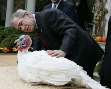 這個(gè)星期四就是美國(guó)一年一度的感恩節(jié),美國(guó)總統(tǒng)布什特別依照慣例,在白宮赦免了2只火雞,溫馨又有趣。今年總共有2只火雞得到總統(tǒng)的免死金牌,分別叫“May”和“Flower”,也就是當(dāng)年清教徒來(lái)到新大陸所搭乘的“五月花號(hào)”的意思。