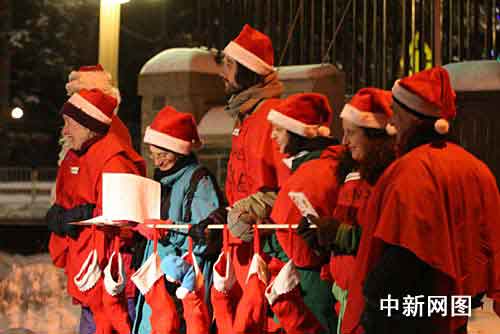 中新網(wǎng)渥太華12月13日電(韓瀟)12日晚,環(huán)保組織“為地球而戰(zhàn)”成員打扮成圣誕老人,提著代表工業(yè)污染的煤炭來到加拿大聯(lián)邦保守黨政府總理哈珀家“送禮”,以抗議加政府無視北極冰蓋融化,破壞巴厘島氣候變化會議的行為。警察戒嚴(yán)保護(hù)總理宅邸,與抗議者短暫接觸后,逮捕了部分“圣誕老人”。