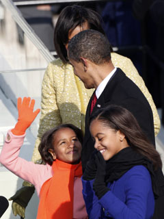 奧巴馬兩個(gè)可愛的女兒10歲的馬莉婭和7歲的薩莎也成為變化的主人公。在就職典禮上,她們始終落落大方地面對(duì)人群和鏡頭,有禮貌地微笑并揮手。原本認(rèn)為黑人兒童就是“貧民窟里長(zhǎng)大的骯臟、聒噪的搗亂者”的成見也被徹底打破。