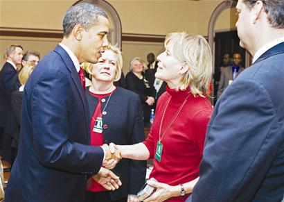 丈夫死后,以各種社會(huì)活動(dòng)為形式,?颂貫榉纯直疾ǘ嗄辍滋烨,她剛作為“9·11”罹難者家屬代表,與美國(guó)總統(tǒng)貝拉克·奧巴馬會(huì)談。