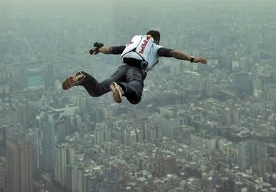 低空跳傘是一項(xiàng)在許多國家被禁止的運(yùn)動(dòng)。這項(xiàng)運(yùn)動(dòng)中,人們從高處建筑物跳下,利用降落傘幫助著陸。