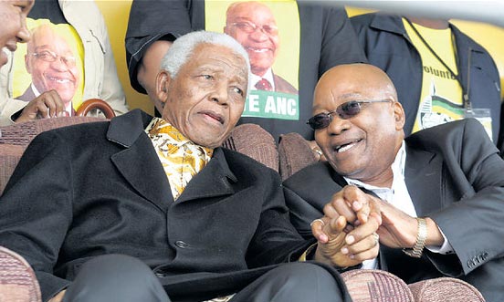 在與曼德拉的會(huì)面后,祖馬告訴約20000名非洲人國(guó)民大會(huì)支持者說(shuō),曼德拉敦促非國(guó)大實(shí)行廉潔選舉,而不是側(cè)重于某一個(gè)政黨組織。他鼓勵(lì)我們以一種有尊嚴(yán)的方式去贏得選舉,而不是談?wù)撈渌恕K說(shuō),非洲人國(guó)民大會(huì)應(yīng)該永遠(yuǎn)存在。(原田)