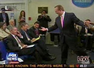 三家主要的有線電視臺都實(shí)況轉(zhuǎn)播了白宮新聞發(fā)布會!度耸隆冯s志記者約翰-吉茲的手機(jī)首先傳出鈴聲。吉布斯在聽到鈴聲后稱:“請放至震動,我們以前也是這樣作的!碑(dāng)手機(jī)再次發(fā)出聲音后,吉布斯走下講臺,要求吉茲交出手機(jī),他隨后把手機(jī)扔給站在房間后面的一位助手。就在吉布斯回到講臺,開始回答一個問題時,美國哥倫比亞廣播公司記者比爾-普朗特的手機(jī)又響了起來。已負(fù)責(zé)報道白宮事務(wù)25年的普朗特拒絕了吉布斯交出手機(jī)的要求,他離開了房間,人們發(fā)出一陣笑聲,普朗特五分鐘后回到他的前排座位。