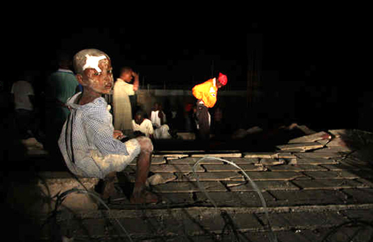 數(shù)以萬計的生還者在戶外過夜,由于食物短缺、食水不潔,能否熬到救援物資到位,尚是未知數(shù)。太子港市中心的戰(zhàn)神廣場彷佛變成了一個巨型露天難民營,災民只能從公共水池中舀不干凈的池水解渴,帳篷布滿灰塵,到處散發(fā)著尿臭,炎熱的天氣使味道更為難聞。許多人全身不是污漬便是傷痕,還有人躺在地上慘呼。