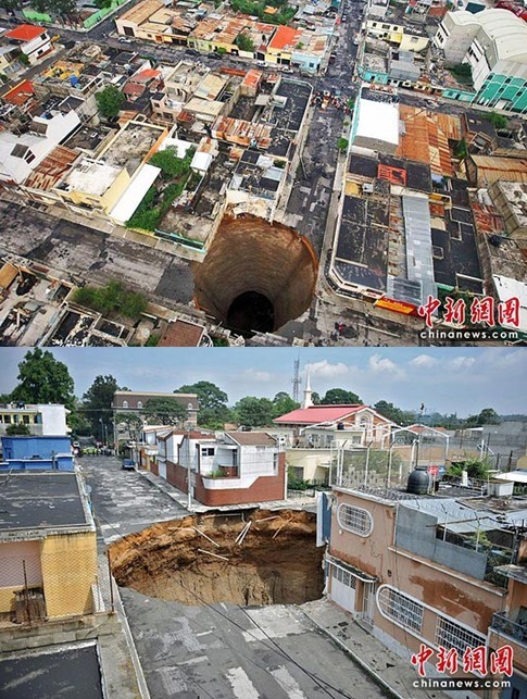 5月31日,熱帶暴風雨“阿加莎”在危地馬拉首都危地馬拉城市區(qū)路面造成一個深60米、直徑30米的巨洞。專家認為,填洞并非根本解決之道,如果不改善地下的管線埋設問題,類似巨洞可能將再出現(xiàn)。
