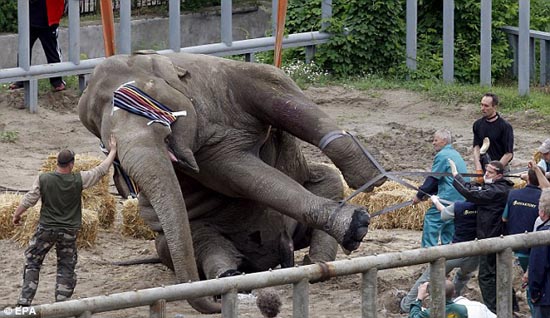 這只名為“男孩”的亞洲象今年已經(jīng)39歲了,他的腳趾甲太長(zhǎng)了以至于他一直感覺(jué)很不爽,動(dòng)物園的工作人員看在眼里疼在心上,專門花重金從德國(guó)請(qǐng)來(lái)一名獸醫(yī)和他的多位助手,為“男孩”修理指甲。
