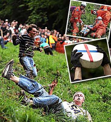 中新網5月27日電 據香港大公網報道,英國格洛斯特郡25日舉行一年一度的“追芝士比賽“。這項賽事已有數百年歷史,比賽規(guī)則十分古怪,參賽者要站在庫珀山山頂,沿山坡追逐滾下山的一塊芝士,今年有58人受傷。