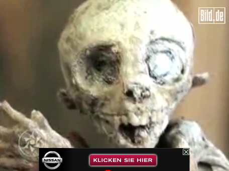 明星主持人、同時(shí)也是一位飛碟專家的茂森在其節(jié)目中指著已經(jīng)被制成標(biāo)本的外星人寶寶的照片,興奮地說(shuō):“我敢肯定這些照片都是真的!”