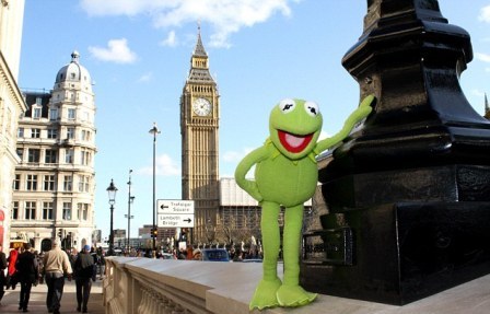 中新網(wǎng)3月22日電 據(jù)英國《每日郵報》21日報道,一對德國夫婦因喜愛美國著名兒童電視節(jié)目《芝麻街》當(dāng)中的角色青蛙柯密特(Kermit the Frog),特地買了一個青蛙玩偶,帶著它走遍世界名勝景點,倫敦大本鐘、悉尼歌劇院、紐約時代廣場、梵蒂岡教堂都留下了青蛙的蹤跡。現(xiàn)在這只青蛙玩偶已經(jīng)到了14個國家,航行超過5萬英里路程,真可謂是一只“見多識廣”的青蛙。