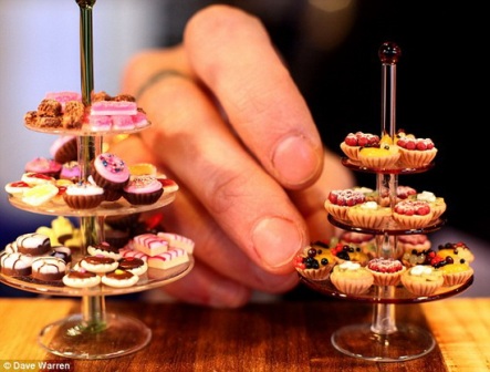 據(jù)英國《每日郵報(bào)》28日報(bào)道,2010年英國伯明翰春季國際博覽會(huì)上一組微型飲食創(chuàng)作最搶鏡頭,這個(gè)微型飲食由微型蛋糕、微型房屋和小玩偶組成。