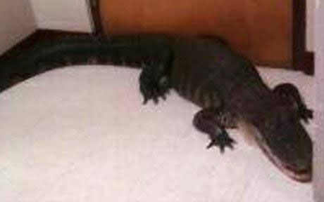 這只鱷魚(yú)當(dāng)?shù)貢r(shí)間7日上午大搖大擺的現(xiàn)身佛羅里達(dá)坦帕市一所中學(xué)自助餐廳。教職員工設(shè)法將鱷魚(yú)引到男廁所,之后鎖上門等待野生動(dòng)物保護(hù)人員到來(lái)。